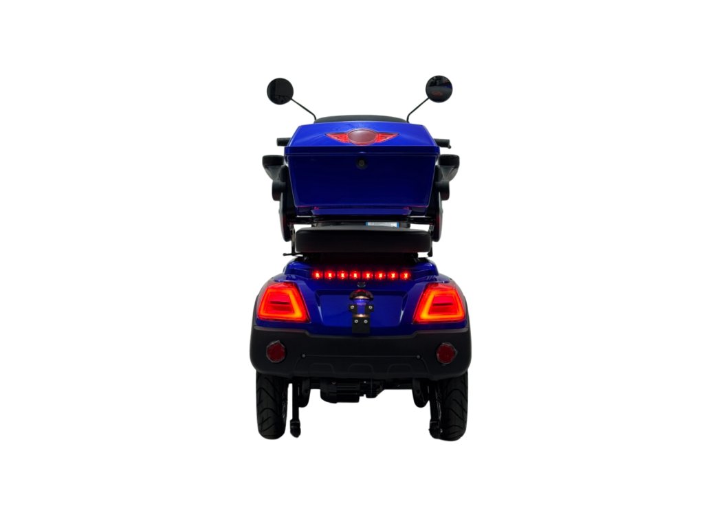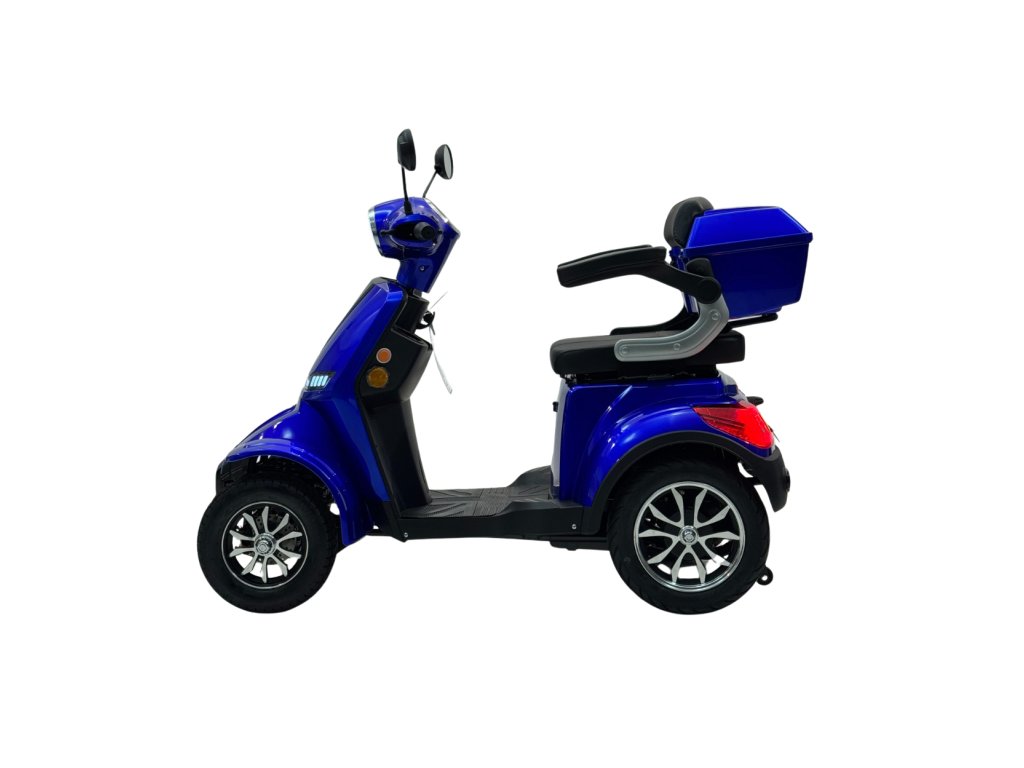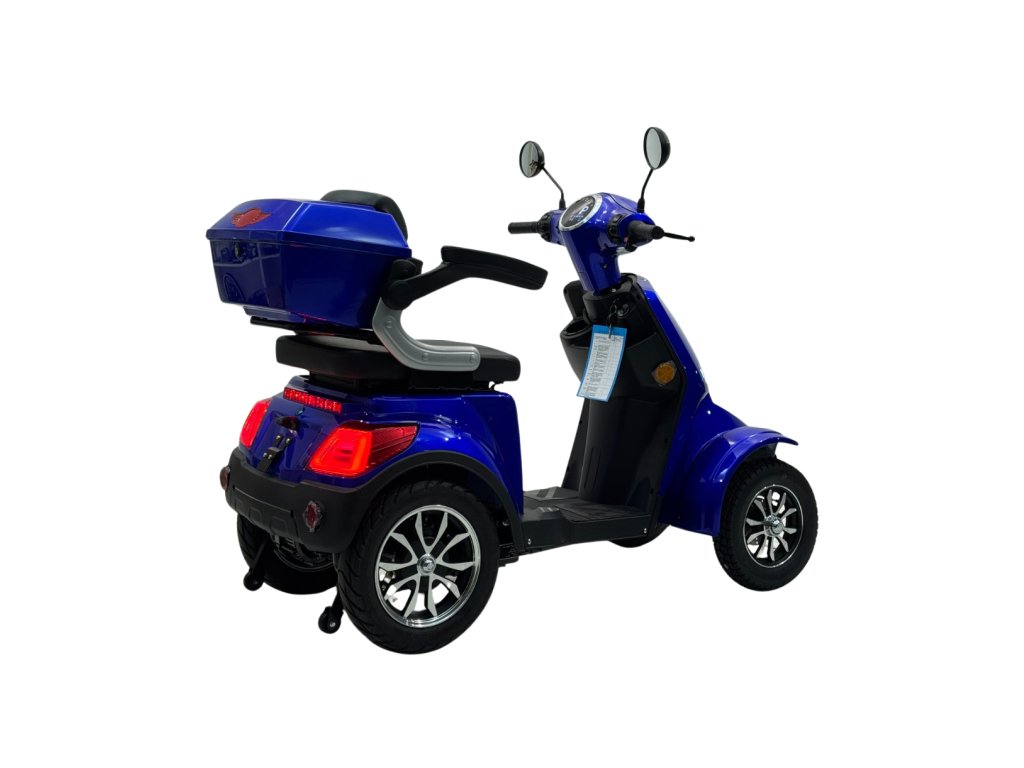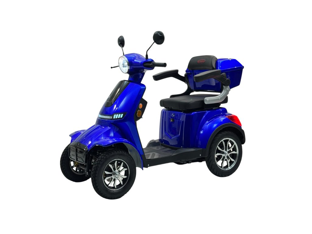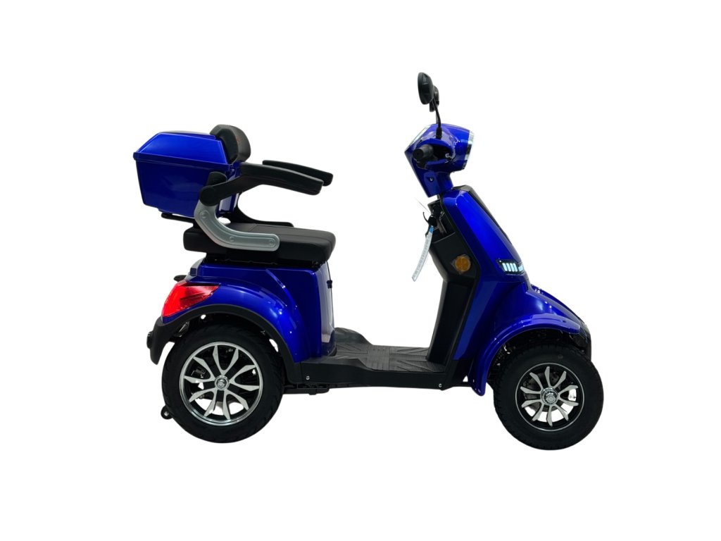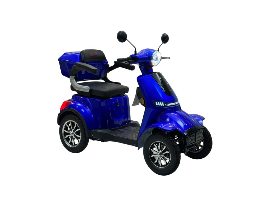 Elektrická čtyřkolka e-FREJ E4 Li nabízí maximální stabilitu, pohodlí a nezávislost pro seniory i osoby s omezenou pohyblivostí. Výkonný 1000W motor, dojezd až 100 km, bezdušové pneumatiky a snadné ovládání zaručují bezpečnou a pohodlnou jízdu – a to bez řidičského průkazu.