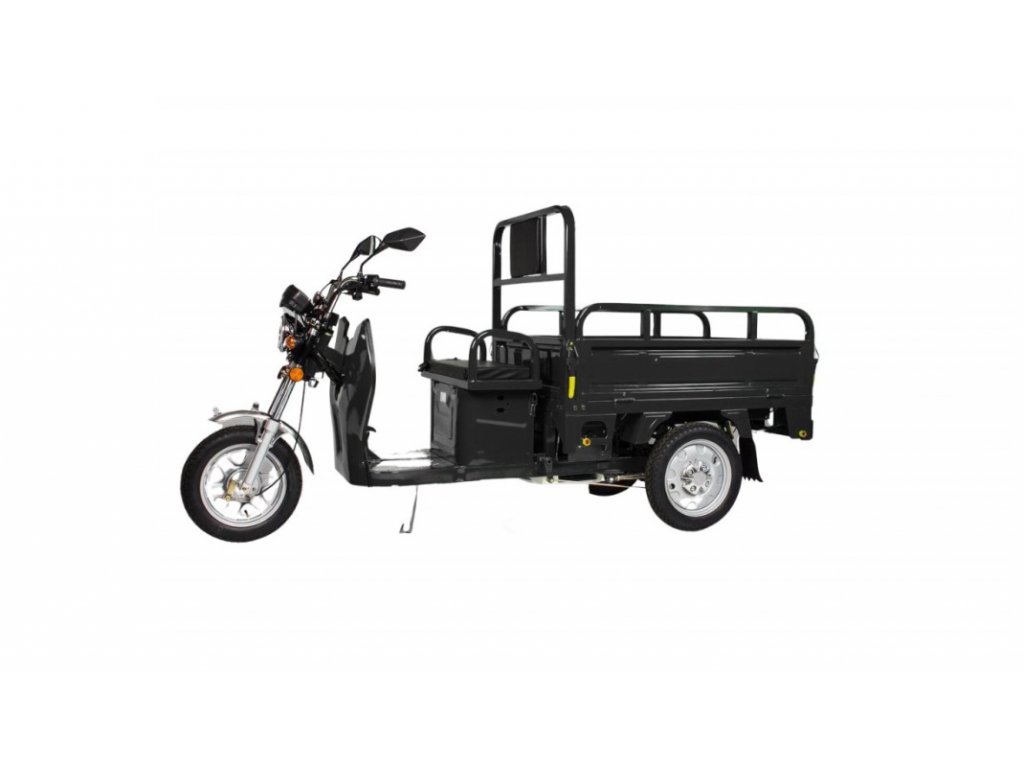 Nákladní elektrická tříkolka Advento Maxi v černé barvě vč. redukce rychlosti a vč. nabíječky připravená k okamžitému užívání. Dojezd až 60 km na jedno nabití.
