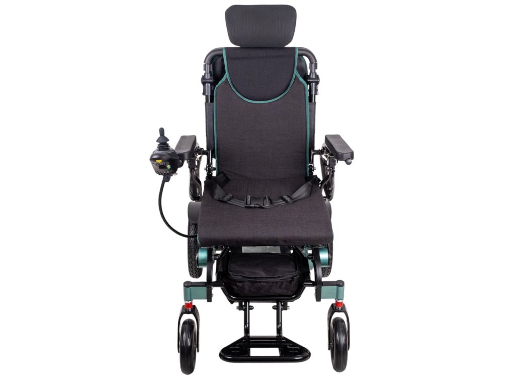 Polohovatelné a skládací elektrické křeslo s opěrkou hlavy, pevnými bezdušovými koly, odpružením, nastavitelnou výškou podnožky, dálkovým ovládáním a 700W motorem (2x350W) k tomu! Skvělý pro pohyb venku i po bytě.
