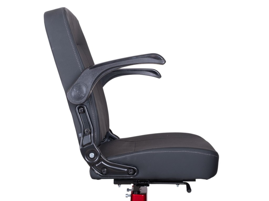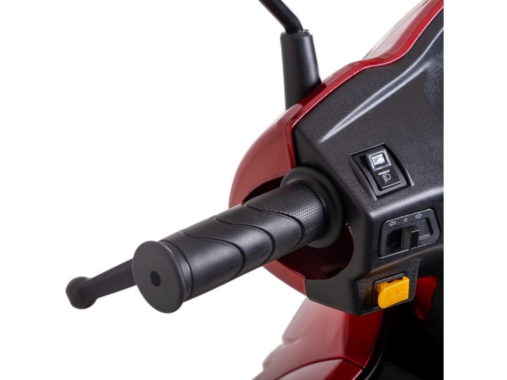 Stabilní tříkolový podvozek s 10" koly a kombinací kotoučové a bubnových brzd vás podrží i v ostřejších zatáčkách. O bezpečnost se postará kompletní osvětlení, blinkry, zpětná zrcátka a praktický držák na francouzské hole či deštník. Nechybí zadní pomocná kolečka proti převrácení. Navíc díky bezdušovým pneumatikám nemusíte mít obavy z defektu a vychutnat si tak klidnou jízdu.