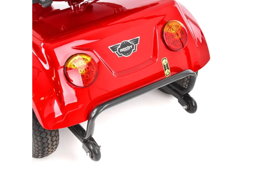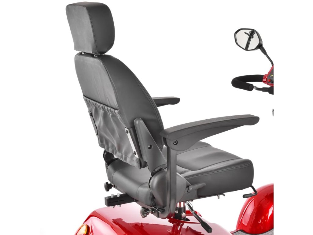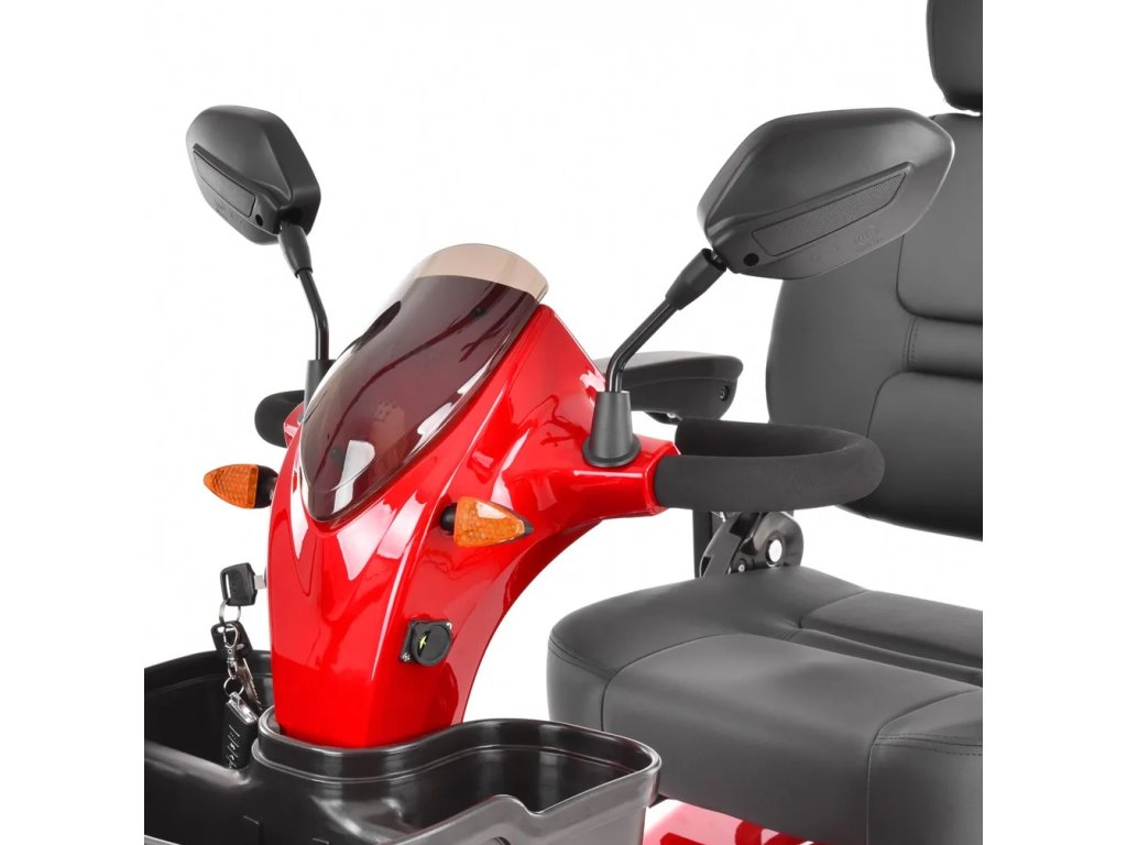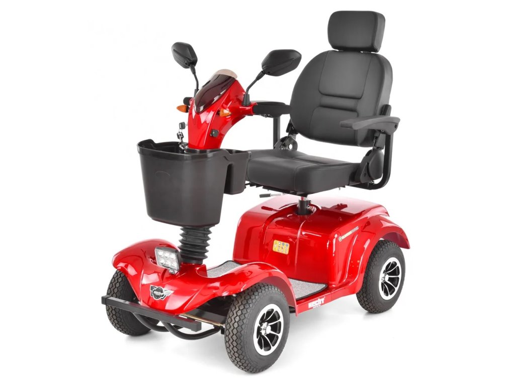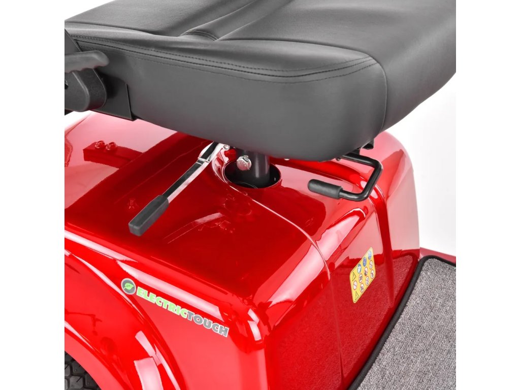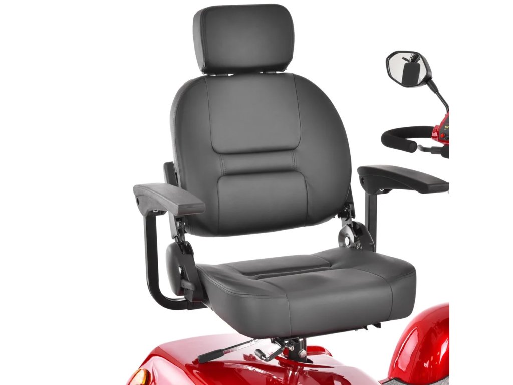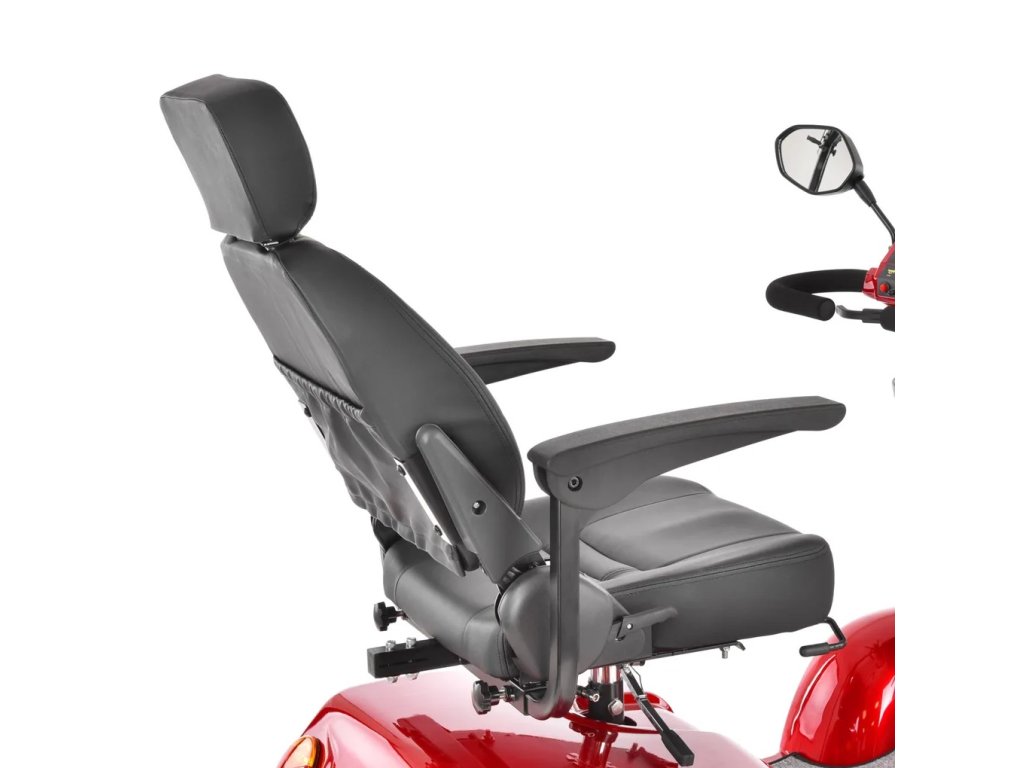 Elektrický vozík - skútr pro seniory a osoby se sníženou pohyblivostí nebo invalidy. Pohodlné křeslo je polohovatelné, po jednoduchém stisknutí páčky lze i otáčet, aby se snadněji vystupovalo a nastupovalo.