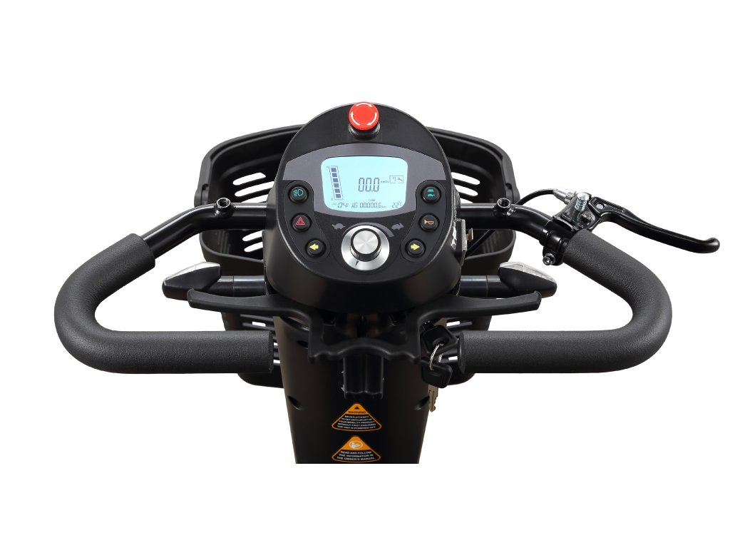 Díky přehlednému a intuitivnímu přístrojovému panelu se naše skútry snadno ovládají. Díky fyzickým tlačítkům na přístrojové desce, si můžete vychutnat příjemné a přímé ovládání různých funkcí. Na palubní desce můžete snadno nastavit rychlost v rozsahu od nízké po vysokou. Pro větší bezpečnost a pohodlí je k dispozici také tlačítko želvy, které snižuje rychlost na polovinu, což je ideální pro použití v interiéru.