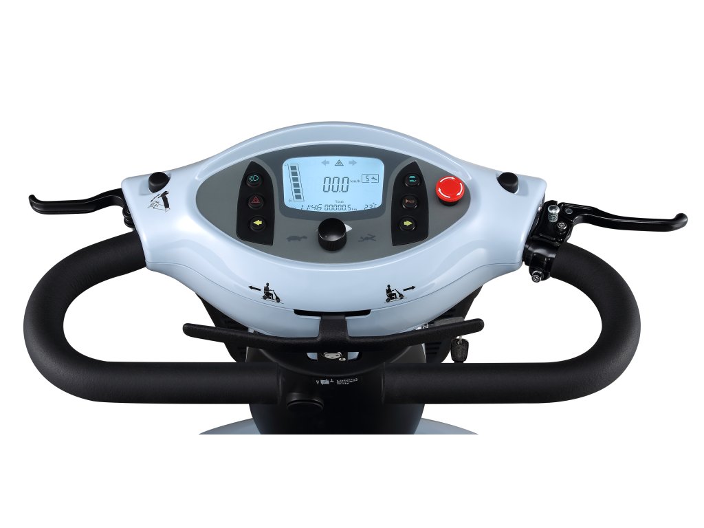 Displej LCD poskytuje přehled o důležitých informacích, jako je teplota, čas, ujeté kilometry, rychlost a procento nabití baterie. Displej také zobrazuje, které funkce jsou zapnuté, například výstražná světla, světlo a tlačítko želvy.