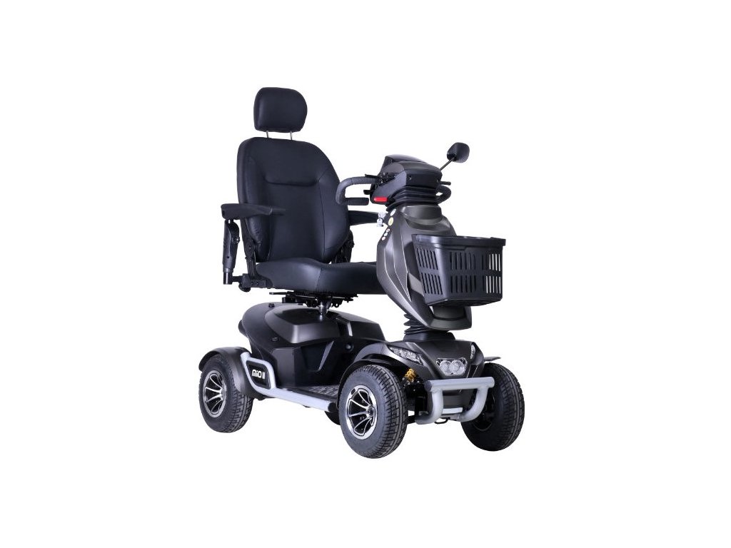Vyrobeno v Nizozemí - Nový model Excel Mio II je vylepšená verze čtyřkolového elektrického skútru Excel Mio od holandské firmy Van Os Medical. Uživatelé budou s funkčností vylepšeného skútru jistě spokojeni. Díky vysoké poloze podlahy skútru jej lze označit za terénní skútr. Projížďka po lesních cestách již nezůstane jen ve vašich představách a houby, které uvidíte během projižďky si můžete pohodlně uložit do svého předního košíku. K poholné jízdě příspívá odpružení všech kol a nezávislé zavěšení kol.
