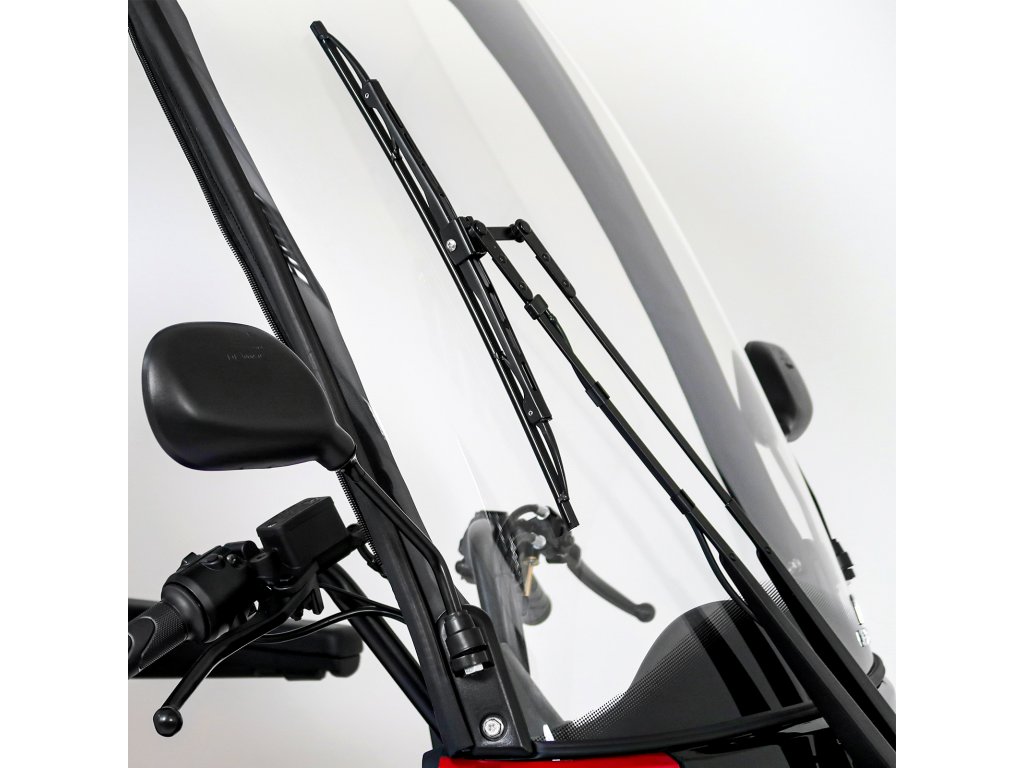 Čelní sklo je vybaveno automatickým stěračem a nádrží na vodu pro zajištění dobré viditelnosti za všech povětrnostních podmínek.