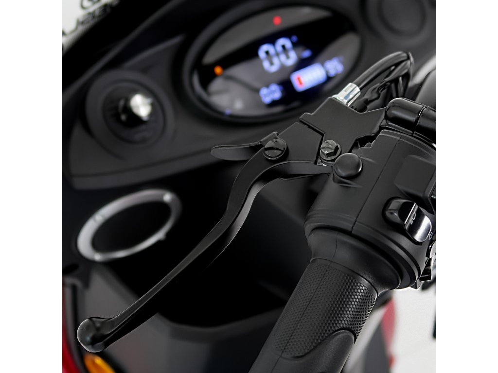 Dvě zpětná zrcátka nabízejí komplexní výhled do všech stran a digitální barevný rychloměr jasně zobrazuje všechny důležité informace. Tato kombinace pohodlí a technického vybavení dělá z každé jízdy potěšení.