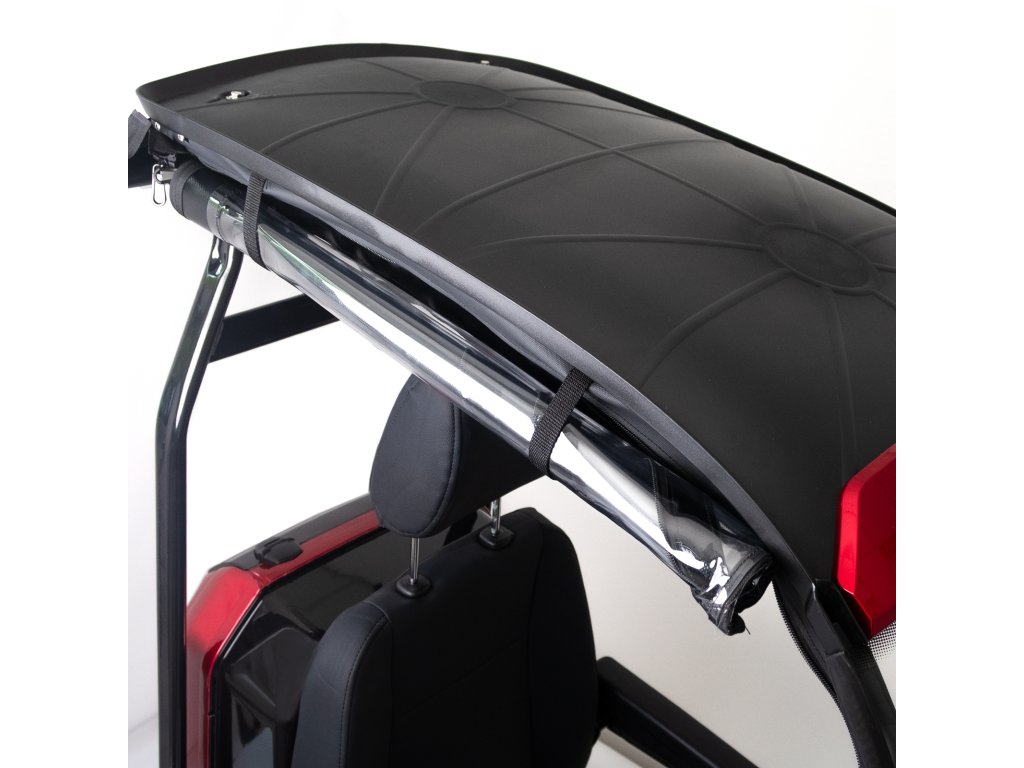 Dodatečná ochrana proti povětrnostním vlivům je připevněna ke střeše a lze ji dle potřeby srolovat nahoru a dolů, zajišťuje maximální jízdní komfort. To znamená, že jste dobře chráněni i za nepříznivých povětrnostních podmínek.