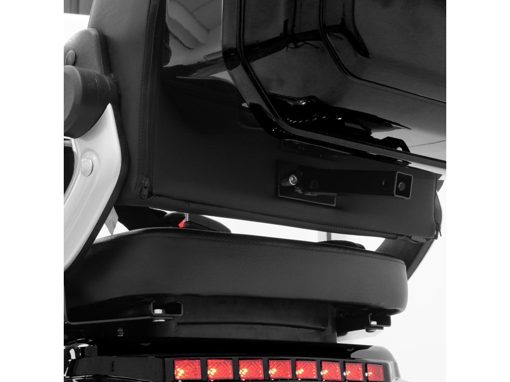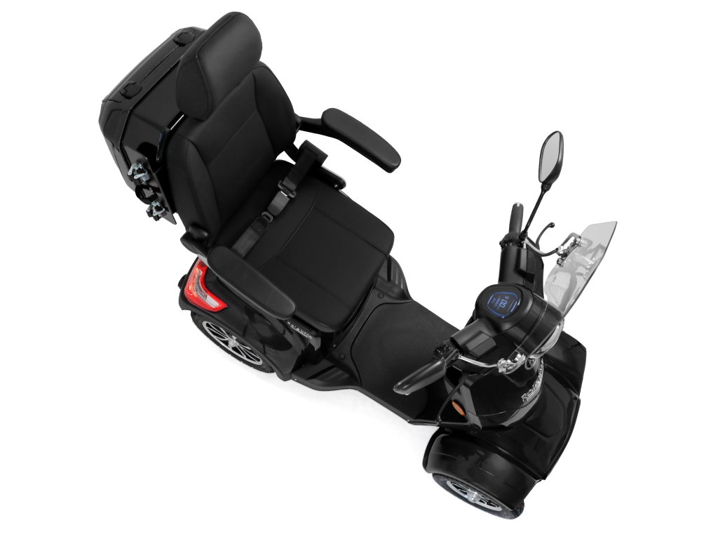 Stoupavost až 12 procent umožňuje snadné zvládání mírných kopců. Bubnová brzda zaručuje bezpečné brzdění . Kromě toho je na řídítkách integrovaná parkovací brzda , která zabraňuje samovolnému pohybu kola při parkování a snadno se ovládá. LED osvětlení – sestávající z potkávacích, dálkových a zadních světel, integrovaných směrových světel a odrazek – zajišťuje dobrou viditelnost v provozu a je certifikováno E-Mark . Ergonomické sedadlo zajišťuje obzvláště pohodlnou a bezpečnou jízdu . Nabízí dobře polstrované sedadlo, vysoké opěradlo, nastavitelné loketní opěrky a opěrku hlavy . Integrovaný bezpečnostní pás zvyšuje bezpečnost při jízdě, zejména na nerovném povrchu nebo při náhlém brzdění. Jasný digitální barevný displej poskytuje přehledné a spolehlivé informace o rychlosti, stavu baterie, celkovém počtu najetých kilometrů a dalších důležitých údajích o vozidle. Vestavěná technologie BMS poskytuje přesné informace o stavu nabití baterie v procentech.