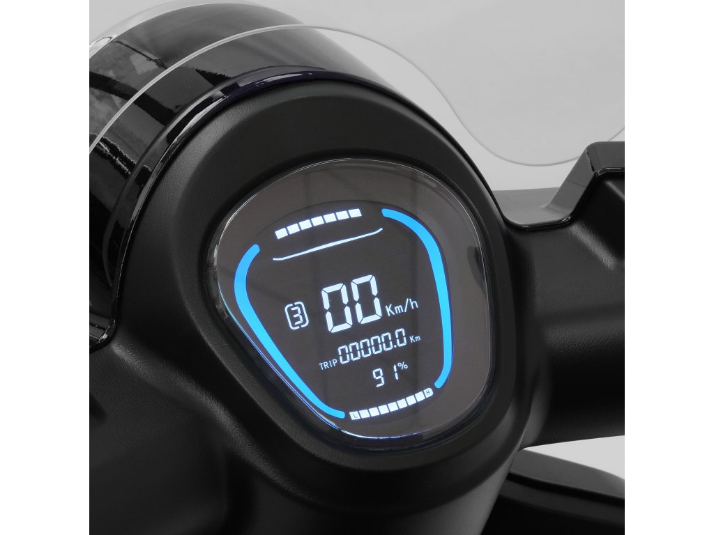 | Zobrazovací nástroje: | Rychloměr, ukazatel nabití baterie, ukazatel celkového počtu najetých kilometrů, světelné a kontrolní symboly, výstražné symboly |