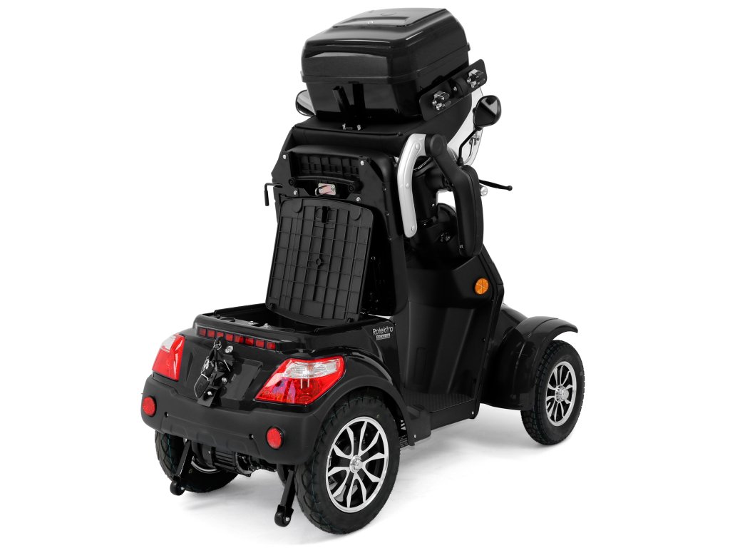 Rolektro E-Quad 25 V.2 s evropskou homologací je perfektním vozidlem napříč generacemi – robustní, stabilní, bezpečný a promyšlený do posledního detailu. Jedná se o elektrický skútr nejnovější generace , navržený podle německých požadavků a bezpečnostních norem. Dodává se s ochranným štítem a pohodlným sedadlem s opěrkou hlavy.