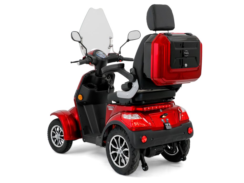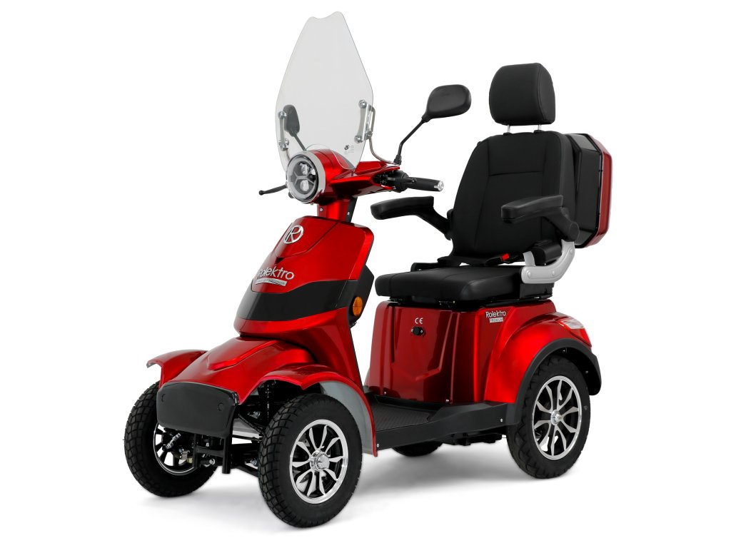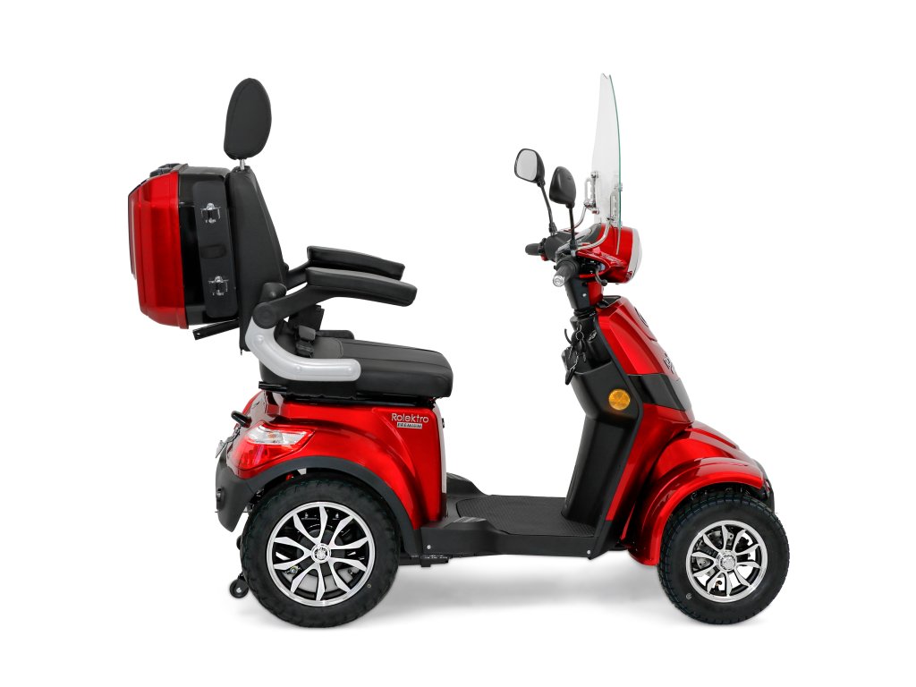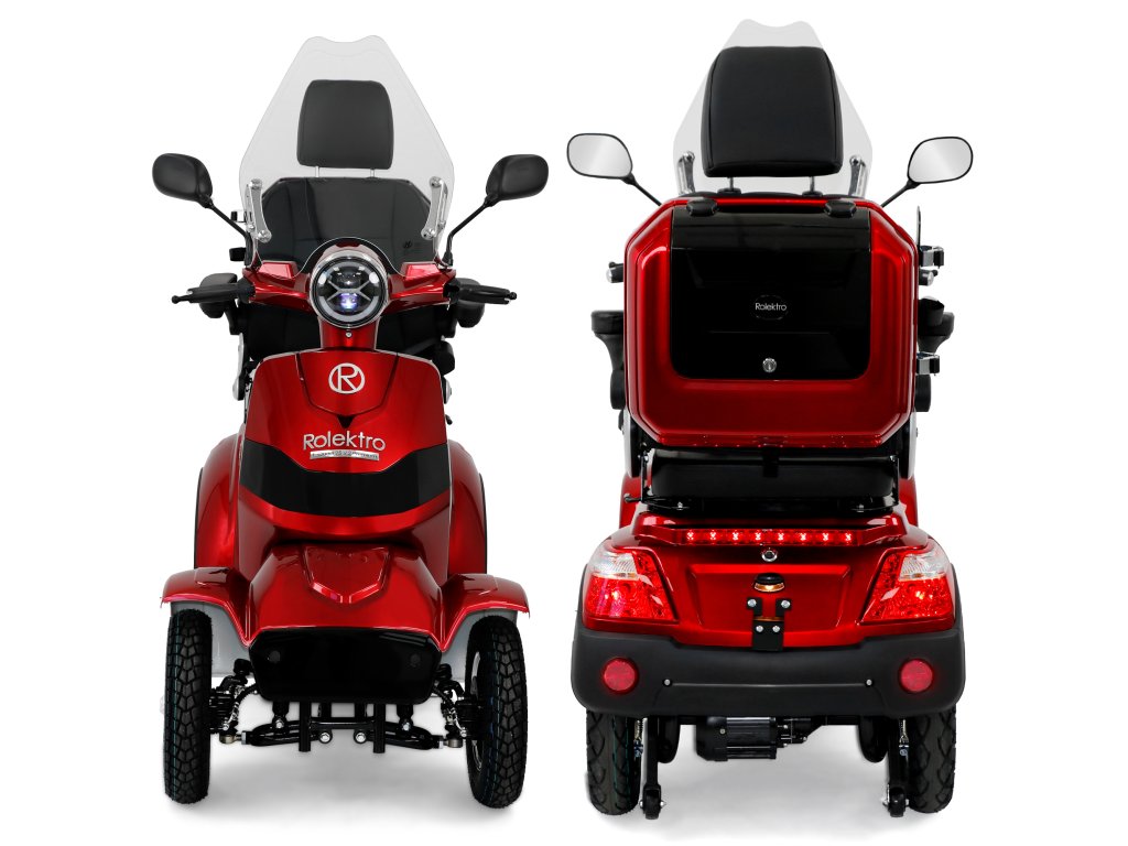 Rolektro E-Quad 25 V.2 s evropskou homologací je perfektním vozidlem napříč generacemi – robustní, stabilní, bezpečný a promyšlený do posledního detailu. Jedná se o elektrický skútr nejnovější generace , navržený podle německých požadavků a bezpečnostních norem. Dodává se s ochranným štítem a pohodlným sedadlem s opěrkou hlavy.