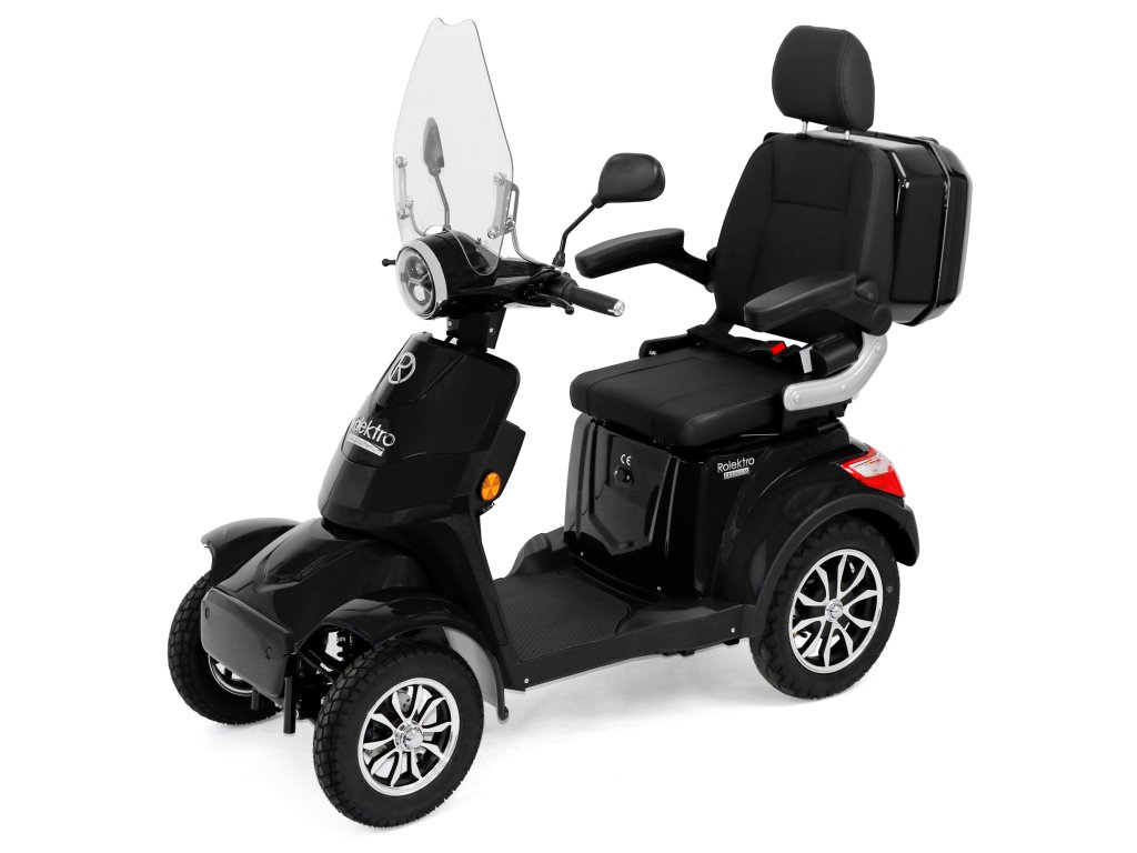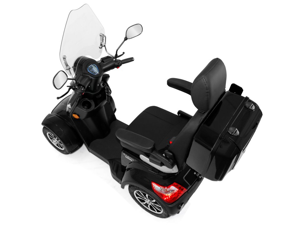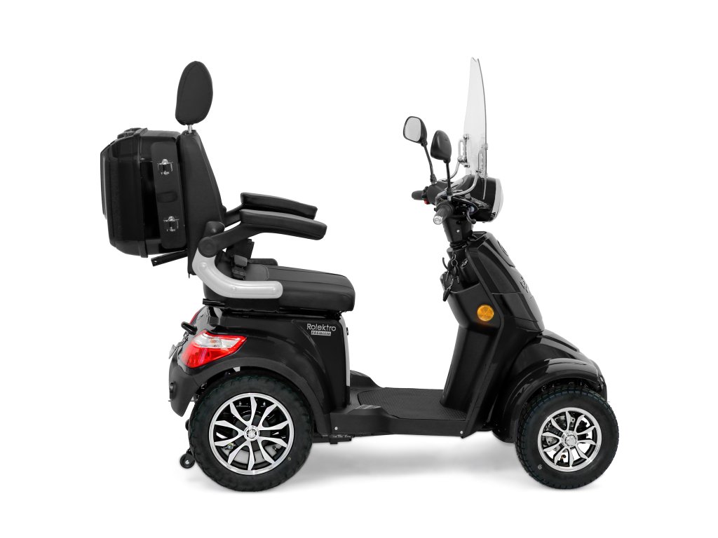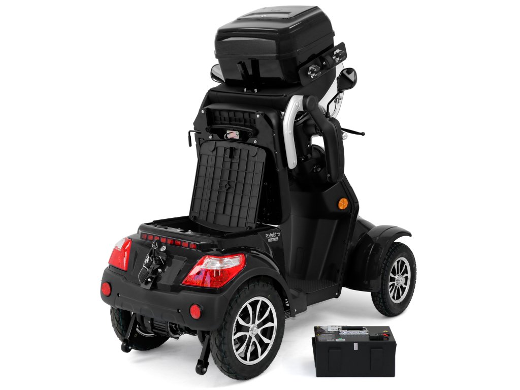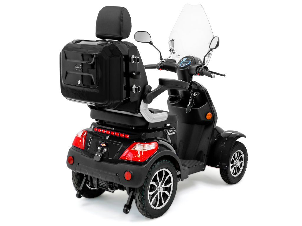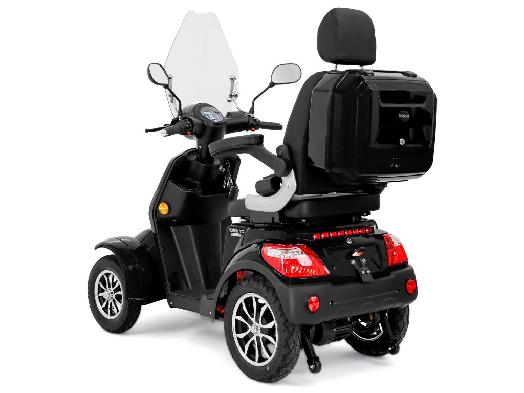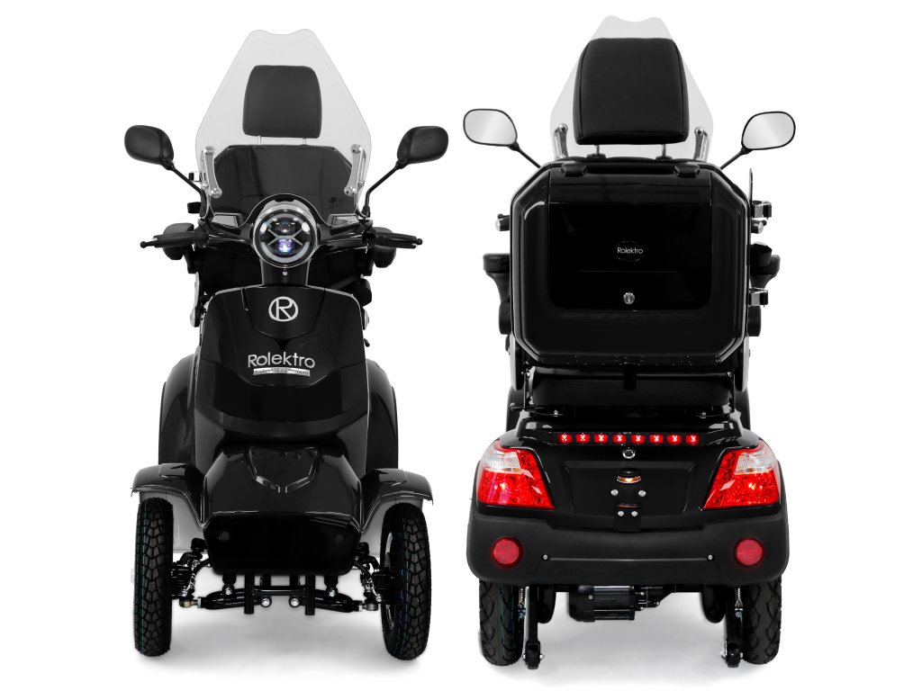 Rolektro Premium E-Quad 25 V.3 se dodává se s lithiovou baterií, která má kapacitu 60V/30Ah, to je o třetinu víc než jakákoli konkurence a umožňuje neuvěřitelný dojezd až 75 km – ideální pro každodenní pochůzky, návštěvy lékaře nebo krátké výlety do přírody. Je perfektním skútrem pro všechny generace - robustní, stabilní, bezpečný a promyšlený do posledního detailu. Jedná se o elektrický skútr nejnovější generace, navržený podle německých požadavků a bezpečnostních norem. Dodává se s ochranným štítem a pohodlným sedadlem s opěrkou hlavy. Má evropskou homologaci pro silniční provoz.