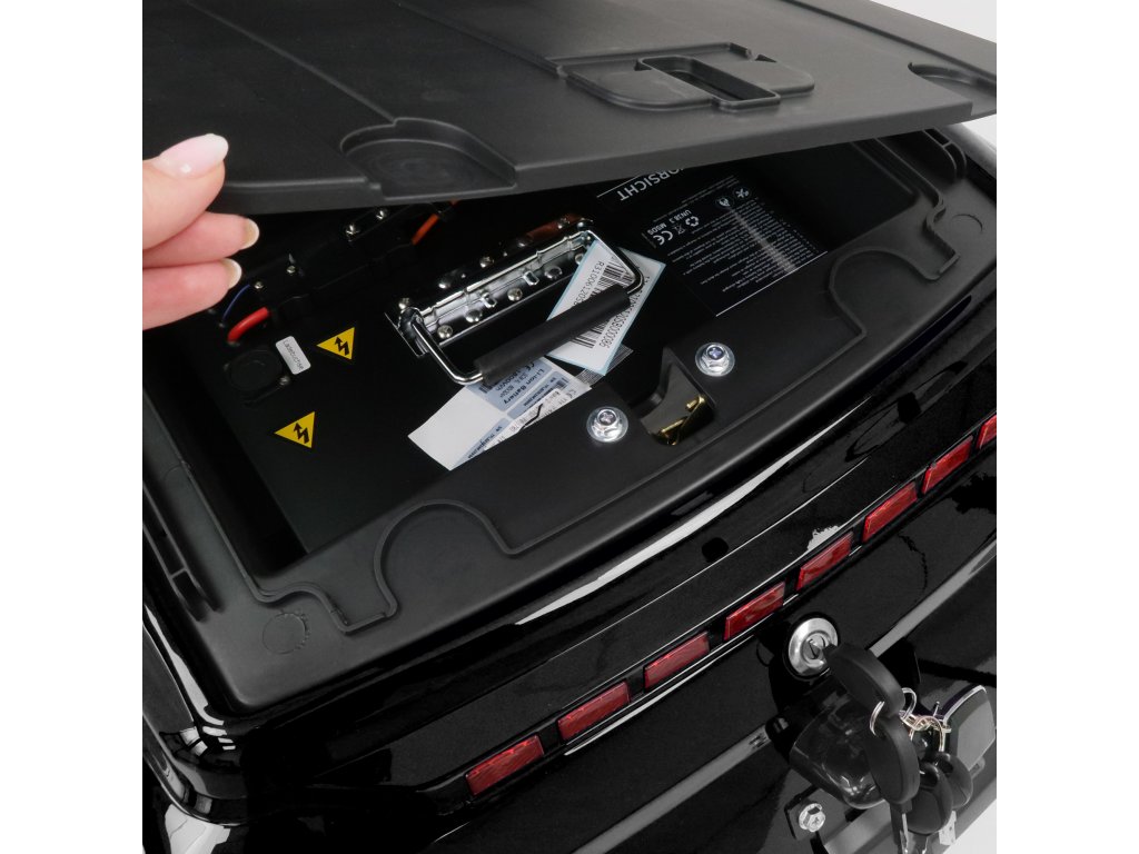 Rolektro Premium E-Quad 25 V.3 se dodává se se snadno vyjímatelnou lithiovou baterií, která má kapacitu 60V/30Ah, to je o třetinu víc než jakákoli konkurence a umožňuje neuvěřitelný dojezd až 75 km. Je perfektním skútrem pro všechny generace - robustní, stabilní, bezpečný a promyšlený do posledního detailu. Jedná se o elektrický skútr nejnovější generace, navržený podle německých požadavků a bezpečnostních norem. Dodává se s ochranným štítem a pohodlným sedadlem s opěrkou hlavy. Má evropskou homologaci pro silniční provoz.