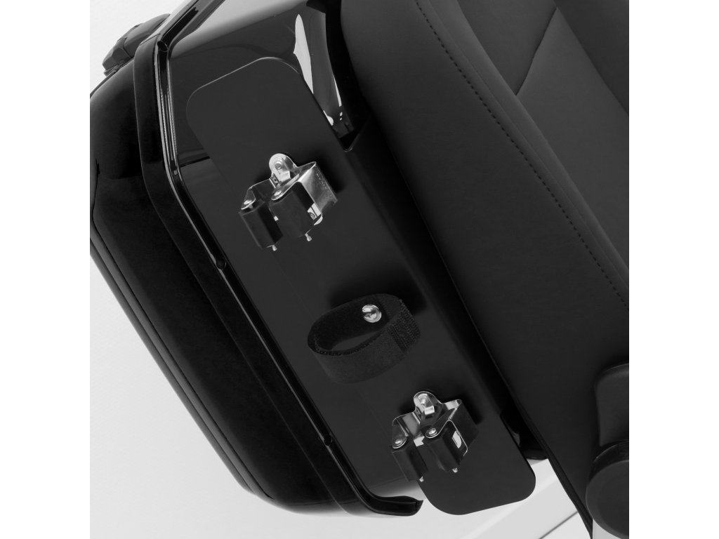 E-Quad 25 V.2 Premium je vybaven praktickým hranatým adaptérem pro tažné zařízení . Integrovaný držák na hůl umožňuje také bezpečnou přepravu holí nebo berlí.