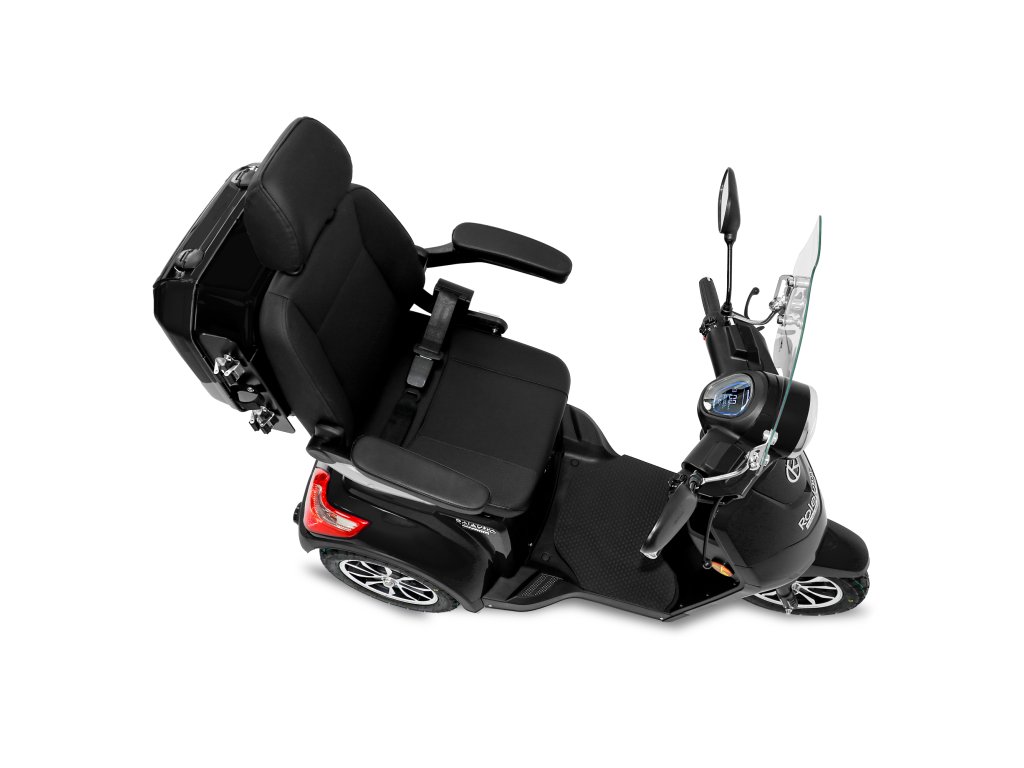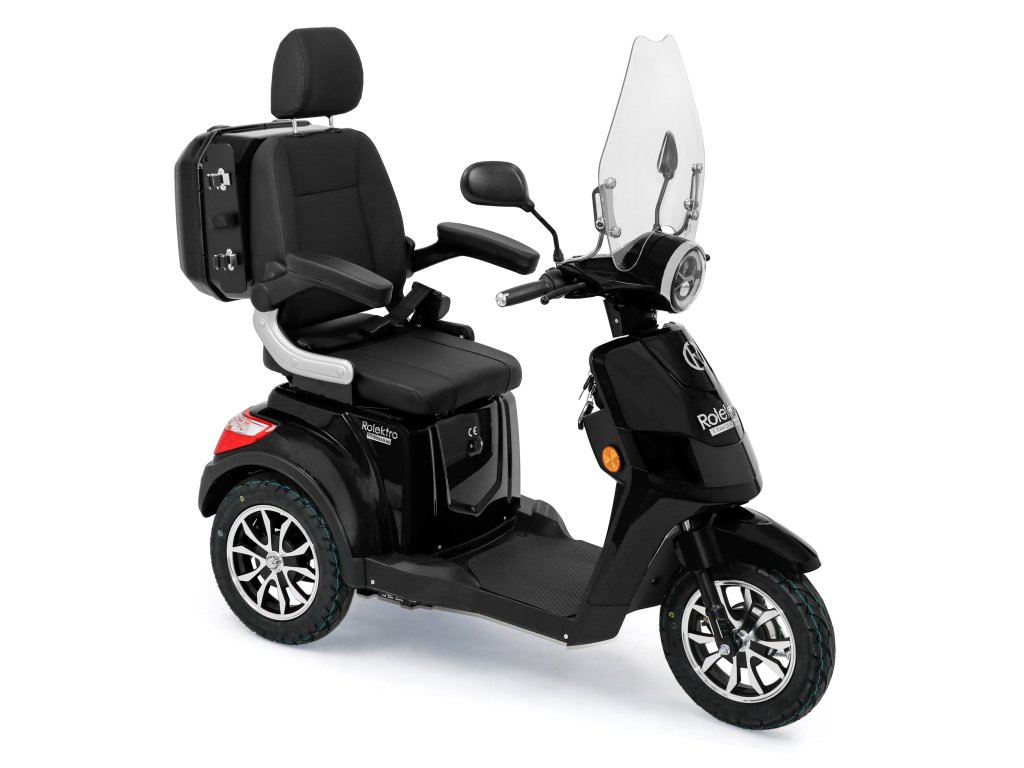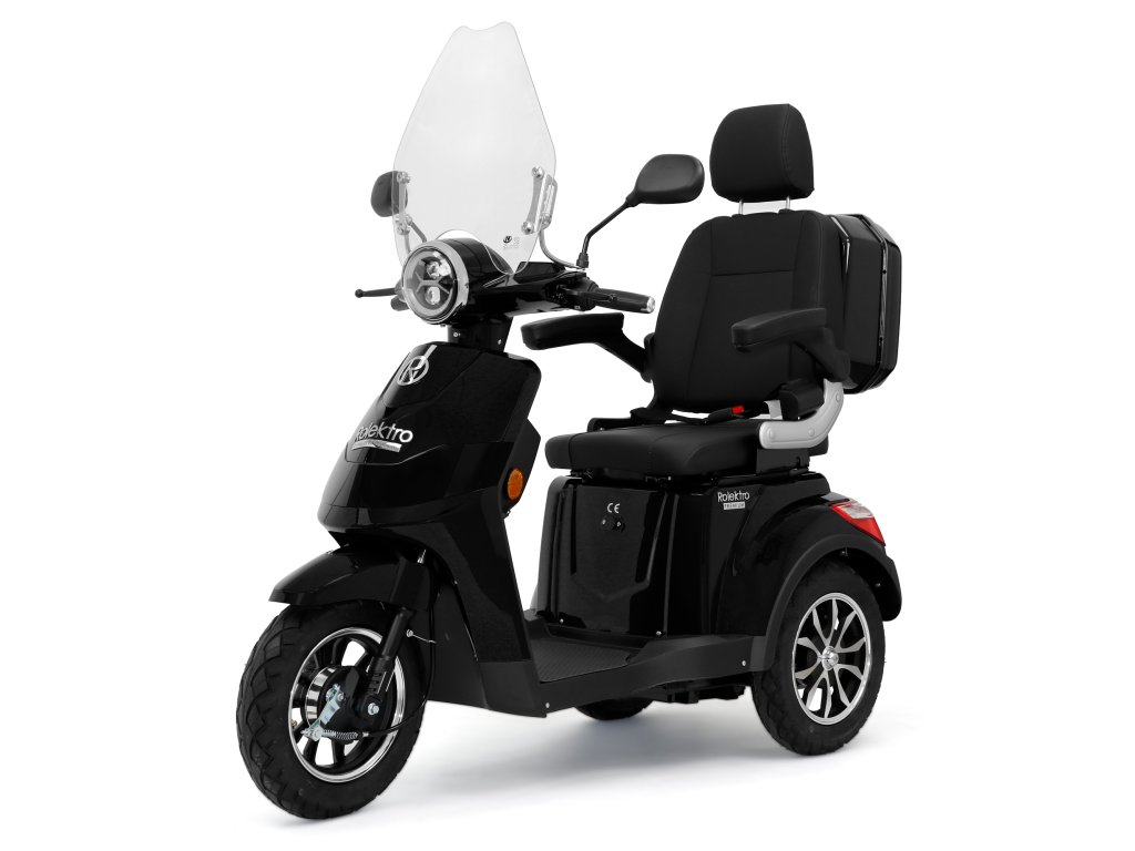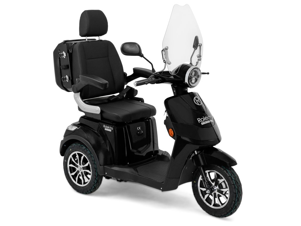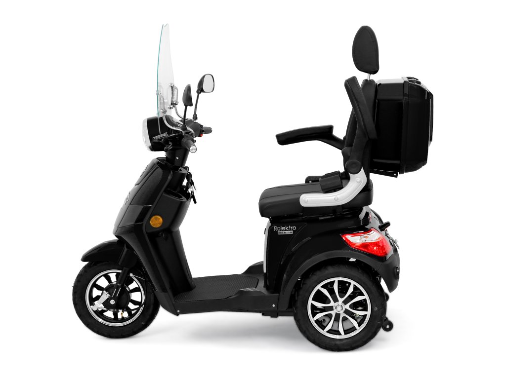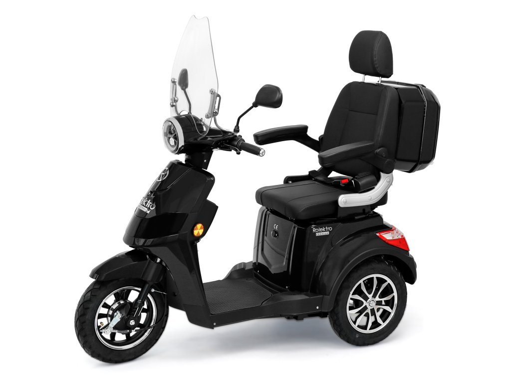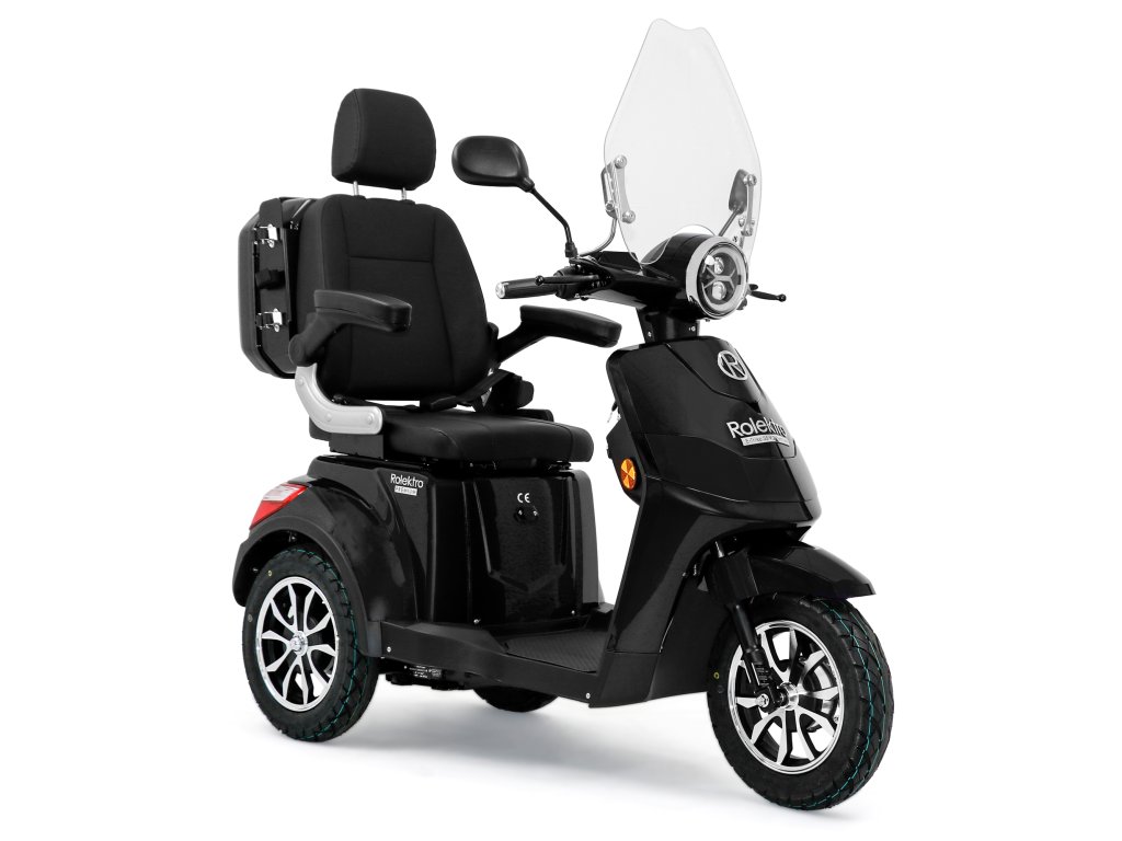 Rolektro E-Trike 25 V.2 s evropskou homologací je perfektním vozidlem napříč generacemi – robustní, stabilní, bezpečný a promyšlený do posledního detailu. Jedná se o elektrický skútr nejnovější generace , navržený podle německých požadavků a bezpečnostních norem. Dodává se s ochranným štítem a pohodlným sedadlem s opěrkou hlavy.