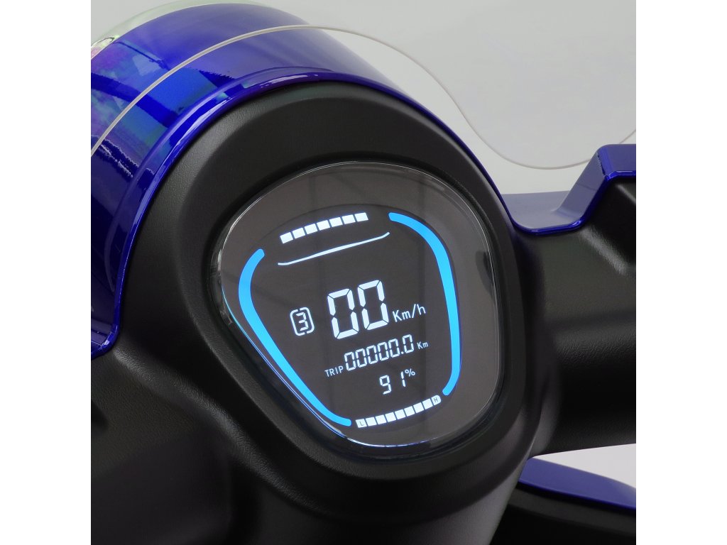 Zobrazovací nástroje: | rychloměr, ukazatel nabití baterie, ukazatel celkového počtu najetých kilometrů, světelné a kontrolní symboly, výstražné symboly |