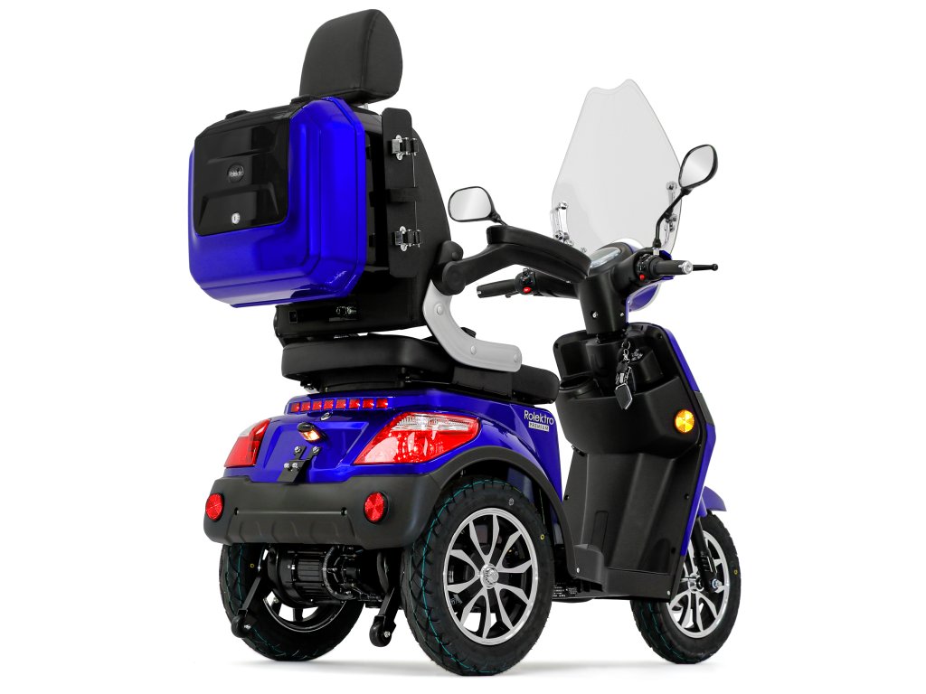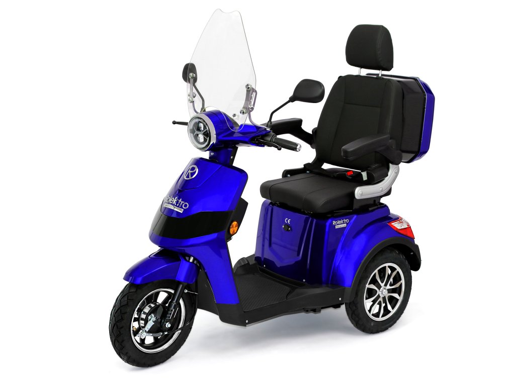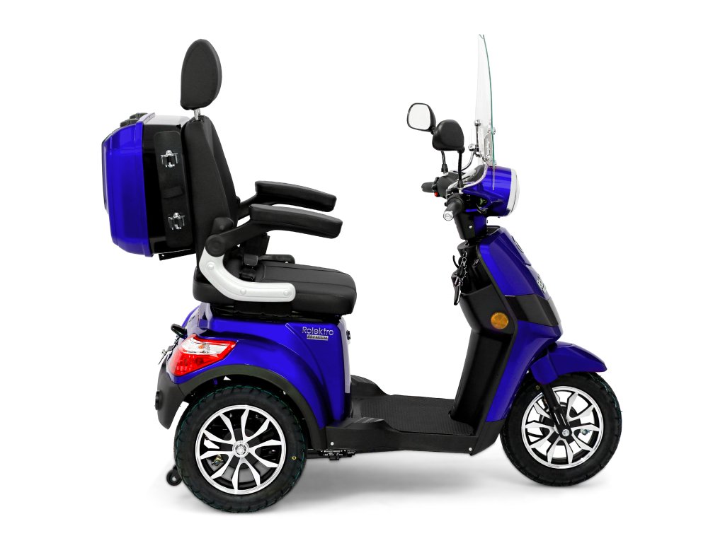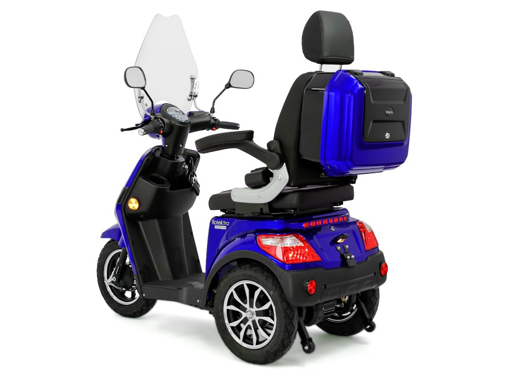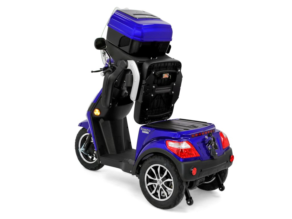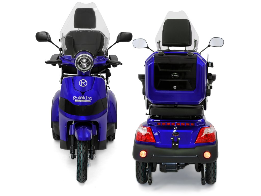 Rolektro E-Trike 25 V.2 s evropskou homologací je perfektním vozidlem napříč generacemi – robustní, stabilní, bezpečný a promyšlený do posledního detailu. Jedná se o elektrický skútr nejnovější generace , navržený podle německých požadavků a bezpečnostních norem. Dodává se s ochranným štítem a pohodlným sedadlem s opěrkou hlavy.