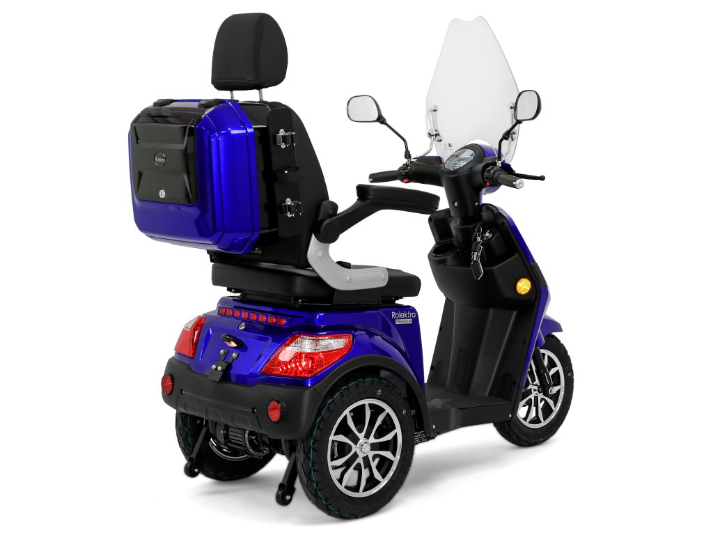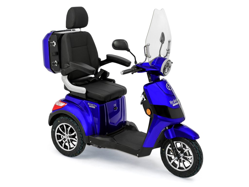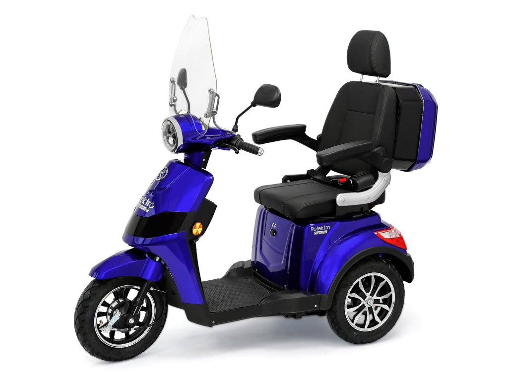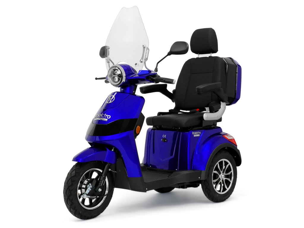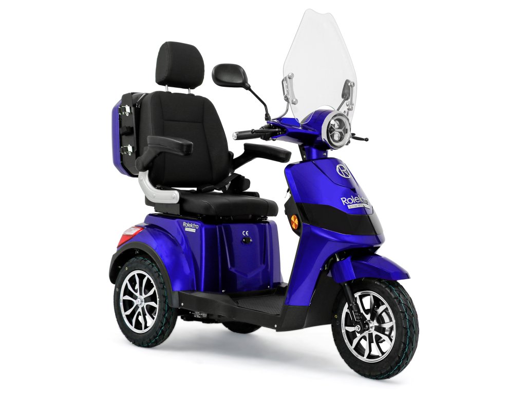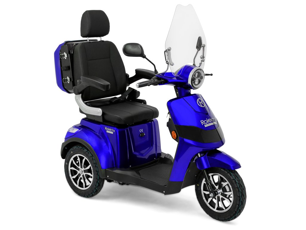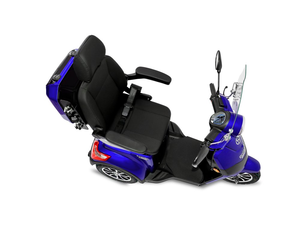 Rolektro E-Trike 25 V.2 s evropskou homologací je perfektním vozidlem napříč generacemi – robustní, stabilní, bezpečný a promyšlený do posledního detailu. Jedná se o elektrický skútr nejnovější generace , navržený podle německých požadavků a bezpečnostních norem. Dodává se s ochranným štítem a pohodlným sedadlem s opěrkou hlavy.