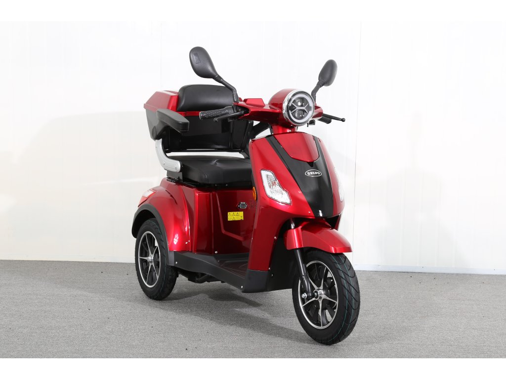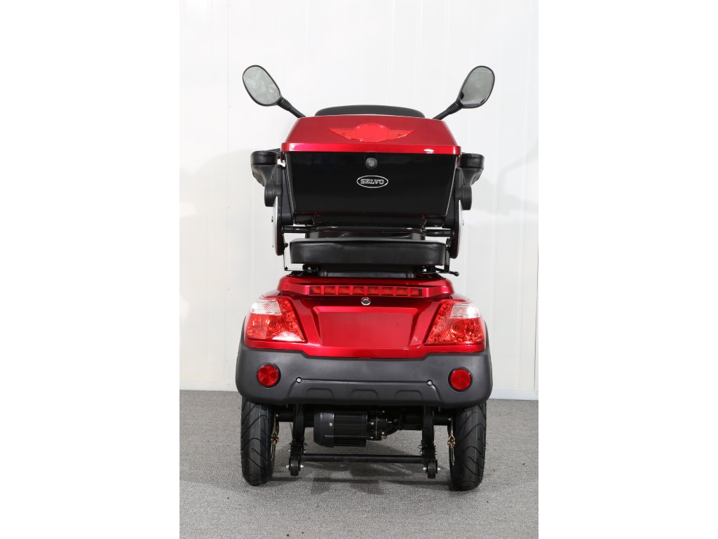 Tříkolový elektrický skútr s výjimatelnou lithiovou baterií (LiFePO4) je úplnou novinkou. Výjimečný výkon 1000W a silový převod zajišťuje pocit skutečné síly, plynule reaguje na otočení rukojeti s ovladačem výkonu a to i v kopcovitém terénu nebo při rozjezdu z křižovatky. Selvo 31000Li se ideálně hodí k dojíždění do práce, na nákup apod. Stabilitu zajišťuje široký rozchod zadních kol, kvalitní odpružení a pneumatiky. Díky designu připomínajícímu motocykl si budete připadat důstojně a stylově i v provozu, kde je toto vozidlo certifikováno jako jízdní kolo. Výbava jako je nabíjecí USB port, zamykatelný úložný box a odkládací prostor na drobnosti jistě také přijdou vhod každodennímu uživateli. Výhodou nového modelu je výjimečná životnost zcela bezúdržbové baterie 3000 až 5000 cyklů. Baterie jde navíc uživatelsky vyjmout a nabíjet zvlášť mimo stroj.